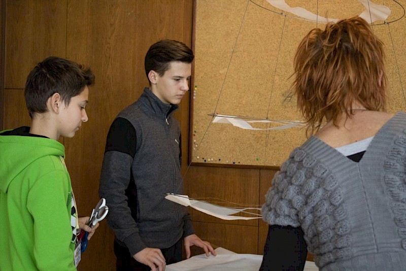 Instalacija pomeni umeščanje likovnih form v notranji prostor. Je postavitev različnih elementov v prostoru. Vzdušje v delavnici je enkratno, mladi umetniki imajo odlične ideje. Bistvo instalacije je, da se prostor, za razliko od majhnega kipa, ki ga lahko obvladamo, zajame kot bivalni prostor.