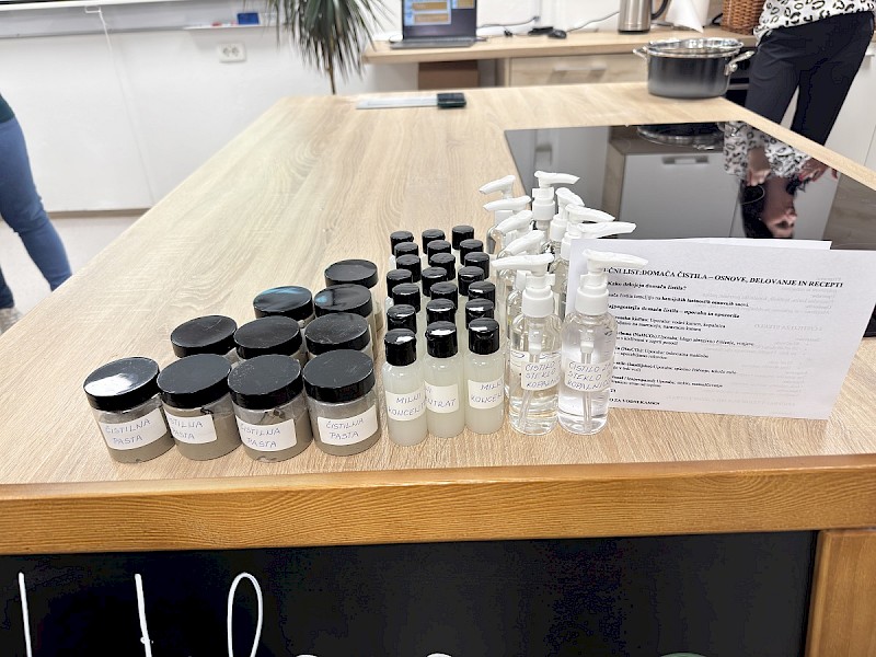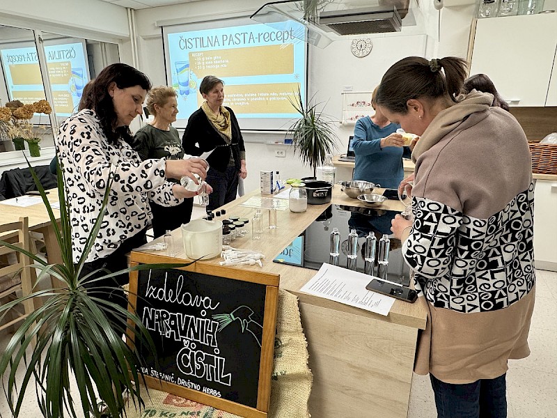 Pod mentorstvom Ljube Štefanič iz društva Herbs smo na delavnici izdelave naravnih čistil odkrivale, kako lahko dom čistimo na bolj naraven, zdrav in srčen način. Nastajala so učinkovita čistila po preverjenih receptih, hkrati pa nova znanja za bolj trajnosten vsakdan.