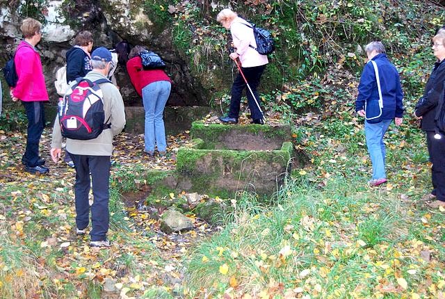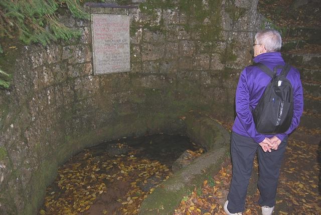 Po ogledu prvega kraškega izvira se je pot nadaljevala po gozdni cesti do vasi Geršiči, kjer so udeleženci naredili nov postanek. Neposredno pred označbo za vas Geršiči, še vedno na desnem bregu Lahinje se nahaja naslednji zanimiv kraški izvir, ki pa je hkrati tudi spominsko obeležje trem padlim talcem v NOB, zaradi načina obzidave pa sodi še v nepremično kulturno dediščino. Javni spomenik je iz delno obdelanega kamna in je posvečen trem talcem, ki so jih italijanski okupatorji ustrelili na tem mestu poleti 1942. Postavljen je bil 1978, oblikovala pa sta ga arhitekta Milan Bajc in Vinko Kepic (Register nepremične kulturne dediščine, citirano 28. 10. 2013).
