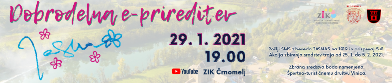 Tradicionalna Dobrodelna prireditev Jasna bo tokrat potekala v e-obliki. Oglejte si jo od 29. 1. 2021, od 19.00 dalje na YouTube kanalu ZIK Črnomelj!