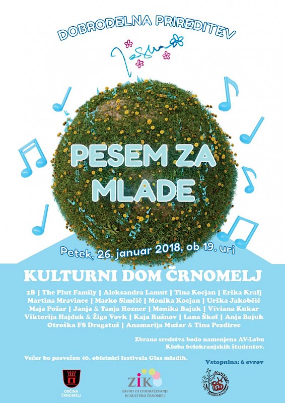 V sodelovanju s Klubom belokranjskih študentov pripravljamo tradicionalno, že 11. Dobrodelno prireditev Jasna, ki bo v petek, 26. januarja 2018, ob 19. uri v Kulturnem domu Črnomelj. Prireditev podpira Občina Črnomelj.