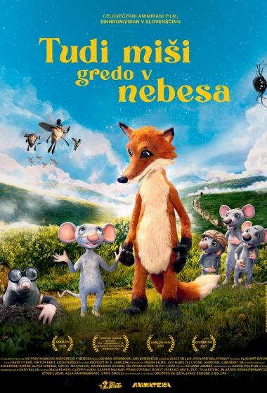 - 17.00 - TUDI MIŠI GREDO V NEBESA (Denisa Grimmová, Jan Bubeníček / Češka, Slovaška, Poljska, Francija / 2021 / 87 min / sinhronizirano / 7+) - Življenjska risanka, ki nam pokaže, da je vse, kar se zdi že skoraj končano, lahko začetek nečesa novega.