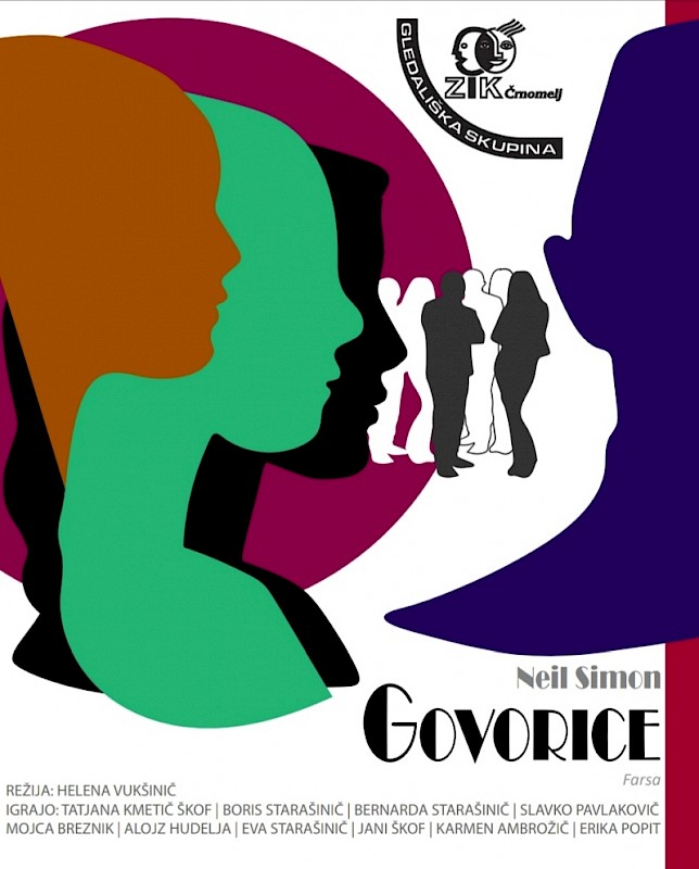 Farsa Govorice (Rumors, 1988) ameriškega komediografa Neila Simona (1927-2018), v prevodu Tine Mahkota, je komedija zmešnjav, prikrivanj in domnev štirih meščanskih parov, ki poskušajo ohraniti dobro ime svoje družbe.