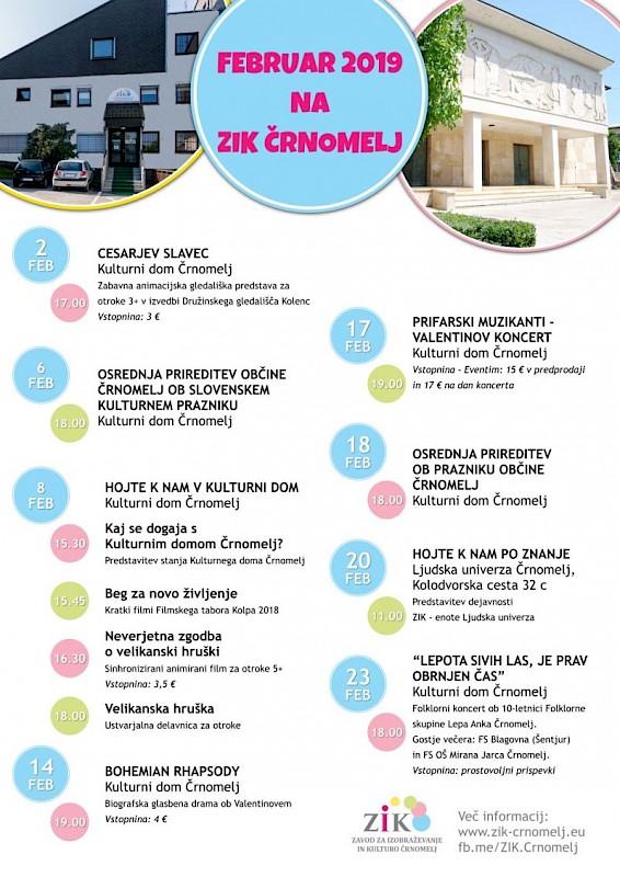 Ob slovenskem kulturnem prazniku vabimo v Kulturni dom Črnomelj na dogodke: