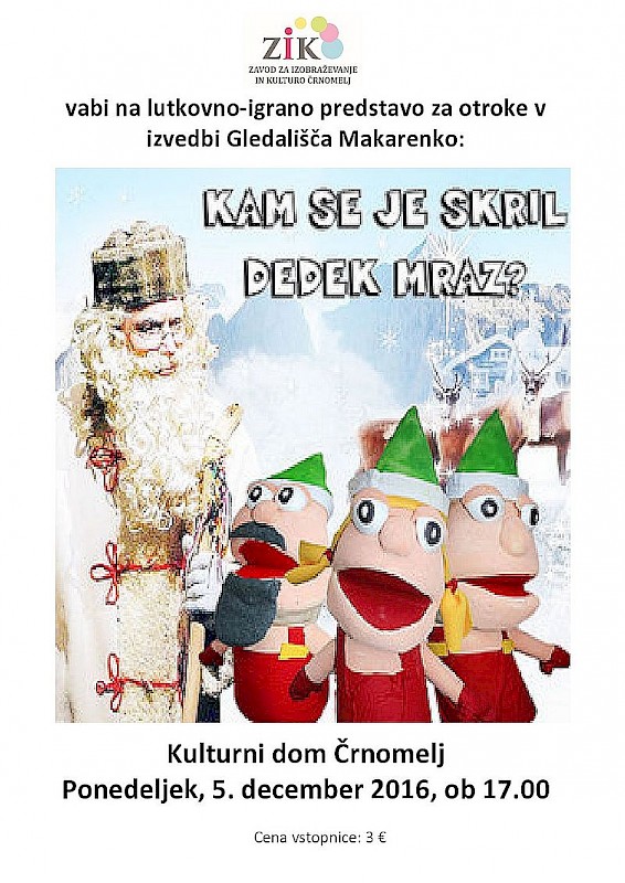V predstavi se poleg lutk pojavi tudi Dedek Mraz, ki na koncu predstave tudi pozdravi otroke.