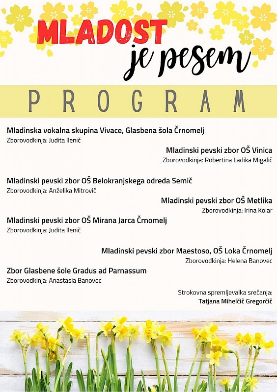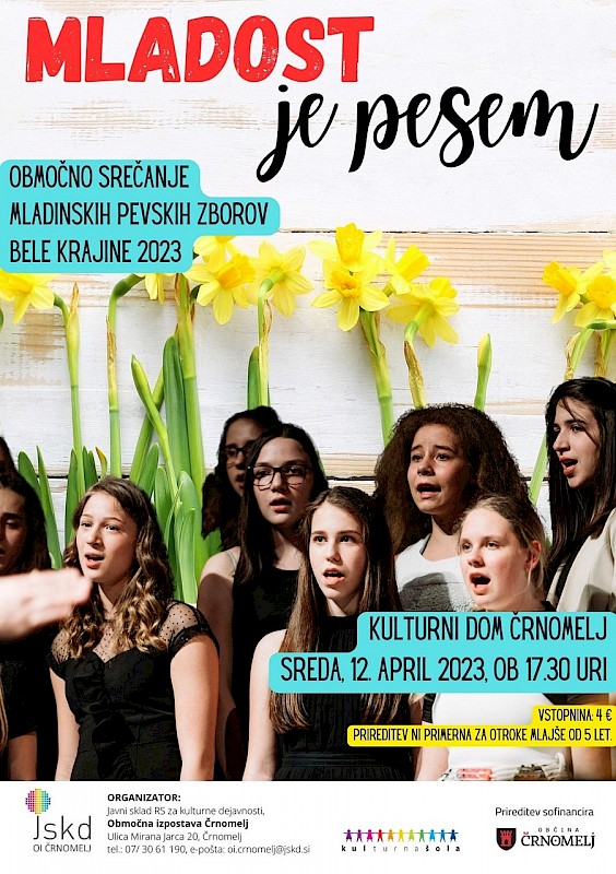 Vabimo na srečanje mladinskih pevskih zborov Bele krajine v organizaciji JSKD OI Črnomelj.