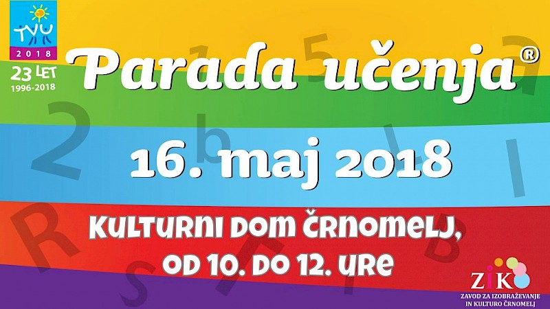 Parada učenja 2018, bo potekala od 10. do 12. ure v Kulturnem domu Črnomelj in njegovi okolici. Slogan letošnje Parade učenja je "Najraje plesaje". Skupaj z domačimi folklornimi skupinami bomo spoznavali in se učili belokranjske ljudske plese in plesne igre, ob koncu pa sklenili krog in zaplesali kolo okoli Kulturnega doma Črnomelj.