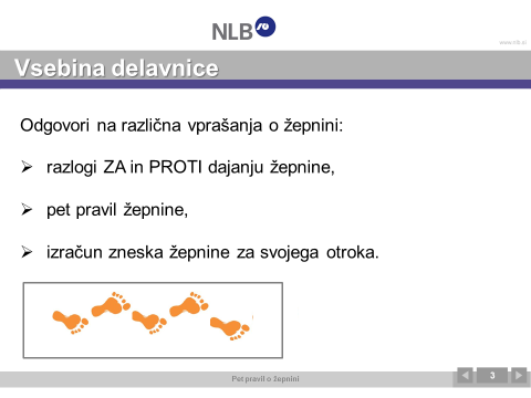 Delavnica, ki jo vodi Simona Krevs, finančna svetovalka na NLB, je namenjena predvsem staršem osnovnošolcev, ki imajo lahko s seboj tudi svoje otroke. Odgovori na vprašanja o razlogih za in proti žepnini, kdaj je primeren čas za začetek, kolikšna naj bo višina žepnine, ipd.