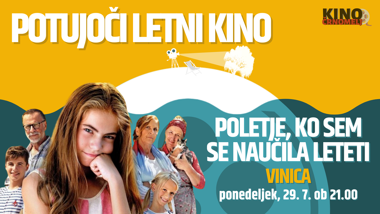 Potujoči letni kino bo v tednu, ko se julij preveša v avgust gostoval skoraj vsak dan. Tedn bo začel v Vinici z odlično balkansko mladinsko komedijo za vse generacije - Poletje, ko sem se naučila leteti.