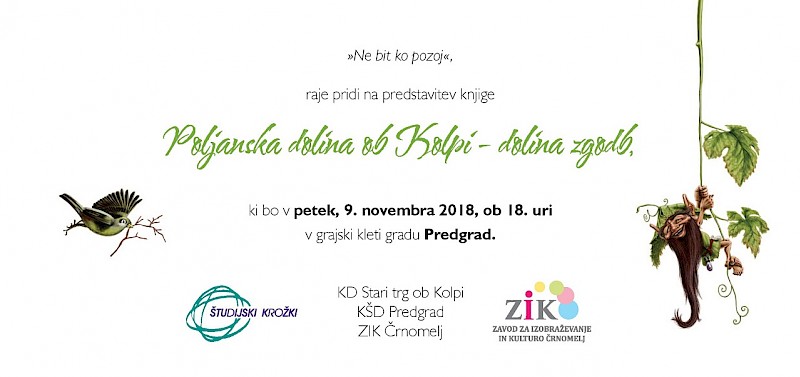 V petek, 9. novembra 2018, ob 18. uri, bo v grajski kleti gradu Predgrad, predstavitev zbirke zgodb Poljanska dolina ob Kolpi – dolina zgodb, The Valley of Poljane by the river Kolpa -The Valley of Tales.