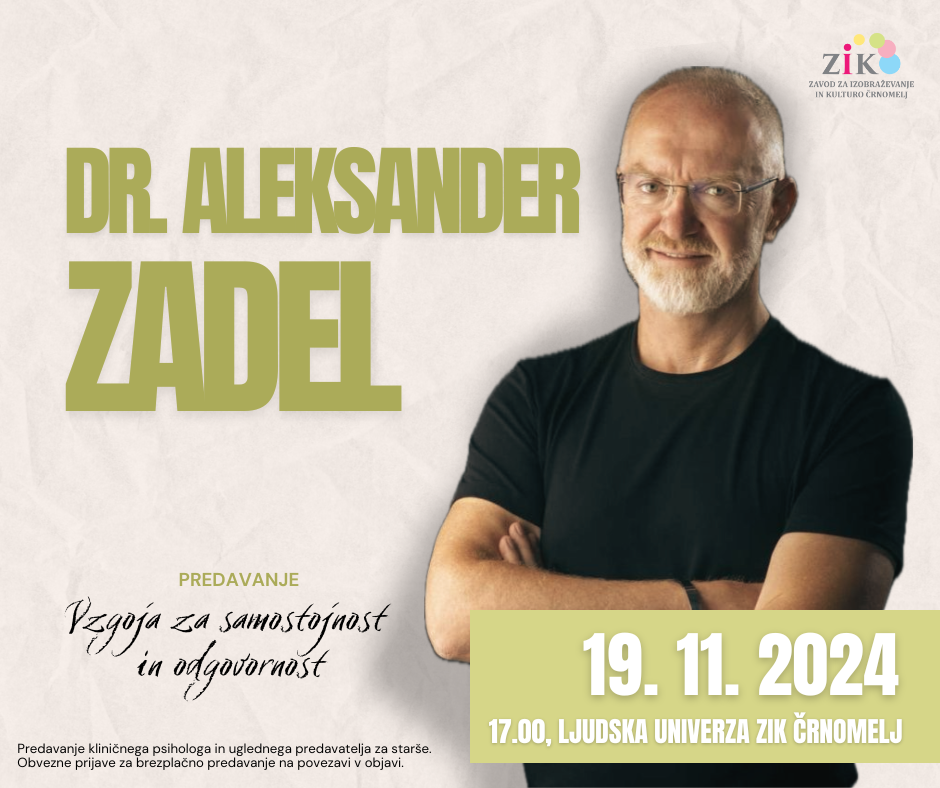 V današnjem svetu je pomembno, da vzgajamo odgovorne in samostojne otroke. Naloga staršev je, da jim priučijo delovne navade, občutek odgovornosti ter odnos do etike in vrednot. Drugo je v rokah otroka. Kaj o vsem tem meni klinični psiholog? Vabljeni na predavanje dr. Aleksandra Zadela!
