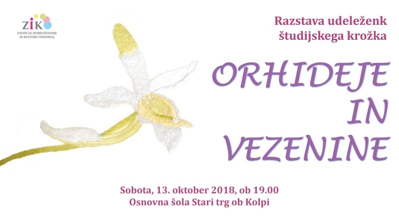 Članice študijskega krožka Orhideje in vezenine, ki deluje na ZIK-u Črnomelj, odpirajo razstavo vezenih izdelkov v soboto, 13. oktobra 2018, ob 19. uri v Osnovni šoli v Starem trgu ob Kolpi.
