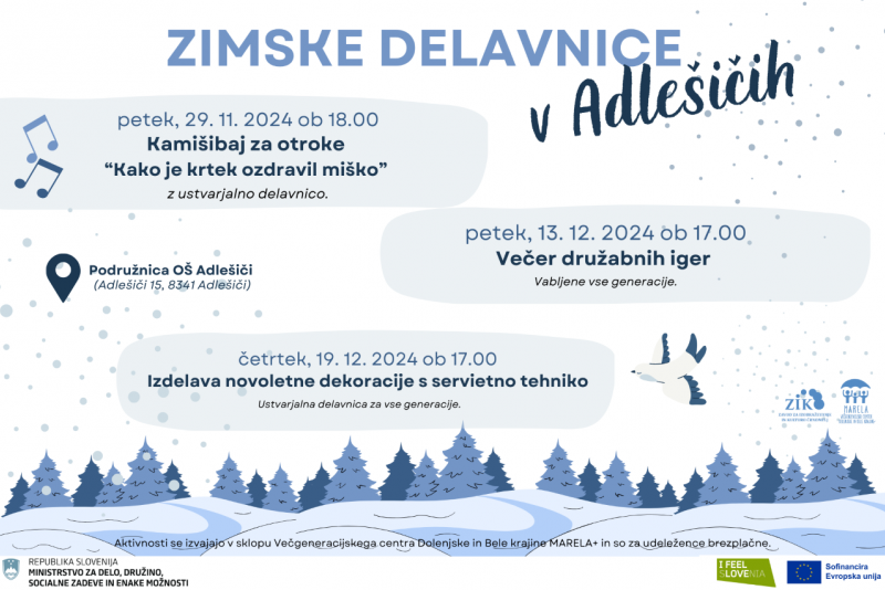 Aktivnosti se izvajajo v sklopu Večgeneracijskega centra Dolenjske in Bele krajine Marela + in so za udeležence brezplačne.