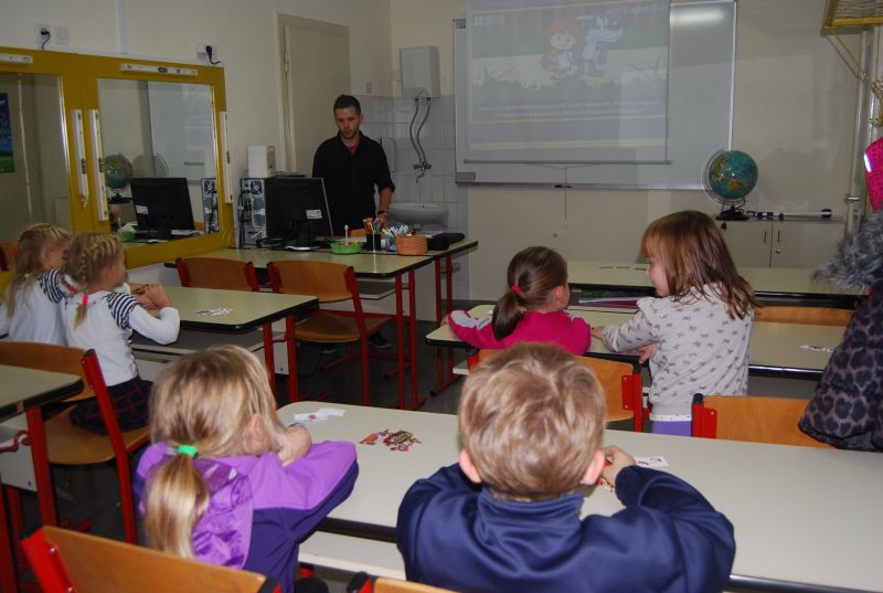 Rdeča kapica v angleščini? Je kar šlo...Imeli smo se lepo, malo nasmejali, nekaj novega naučili, narisali risbo in se posladkali.