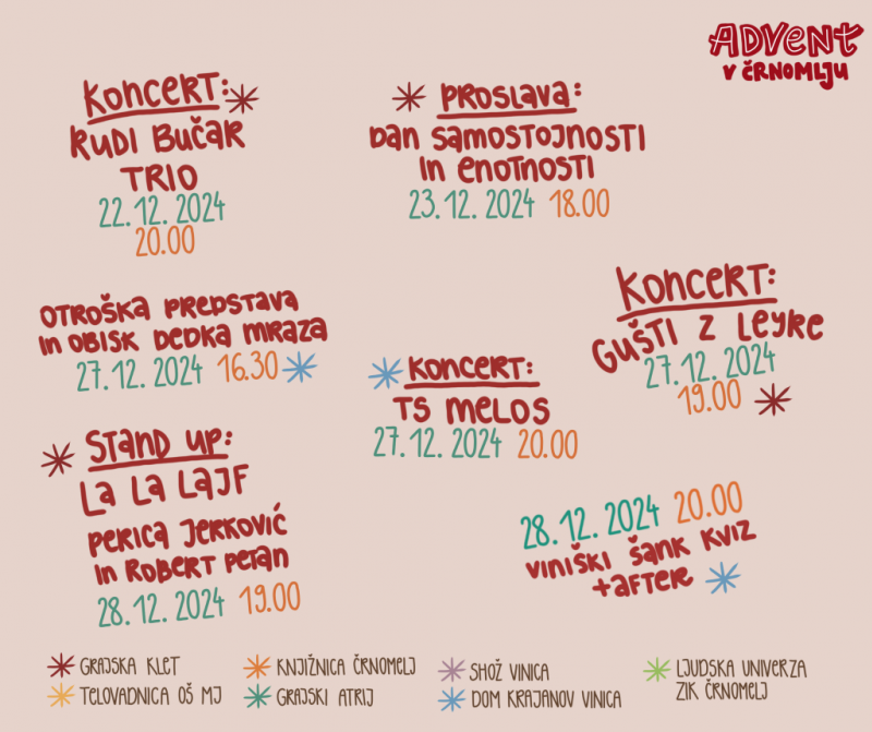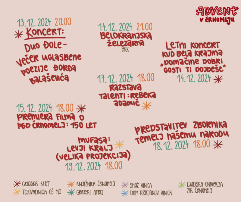 Glavni PROGRAM adventnega dogajanja v Črnomlju, ki nas še čaka: