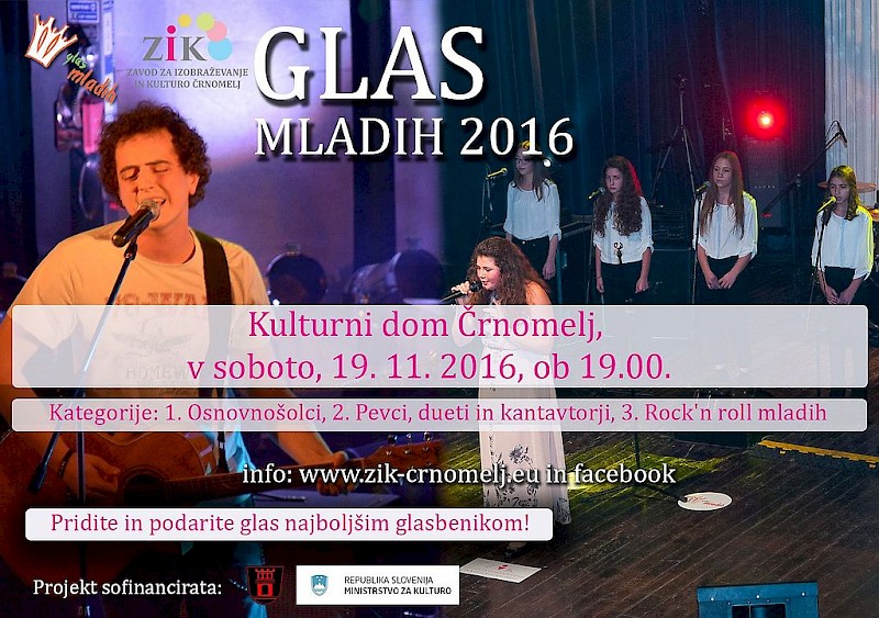 Najboljše bosta izbrala občinstvo in strokovna komisija v sestavi: Urška Majdič, Tina Marinšek, Miha Guštin - Gušti, Zmago Šmon in Rudi Vlašič. Odmor za štetje glasov bodo popestrili domači belokranjci The Plut family in lanska zmagovalka Glasa mladih Aleksandra Vovk.