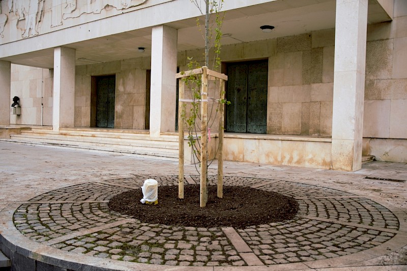 V okviru študijskega krožka Trajnostni vrt in v sklopu akcije Urbanega zelenja mesta Črnomelj, smo v sredo, 10. aprila, na ploščadi pred Kulturnim domom, na mesto kjer je nekoč že stalo drevo, zasadili topol.