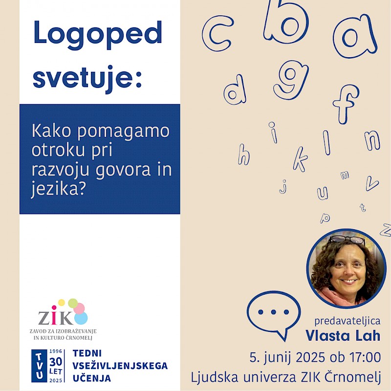 ZIK Črnomelj v sklopu dogodkov Tednov vseživljenjskega učenja 2025 vabi na predavanje, namenjeno staršem, vzgojiteljem in vsem, ki želijo otrokom pomagati pri razvoju komunikacije.
